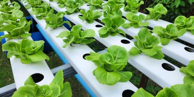 Year-round production of greens and herbs in a controlled-environment, closed-loop hydroponic system.